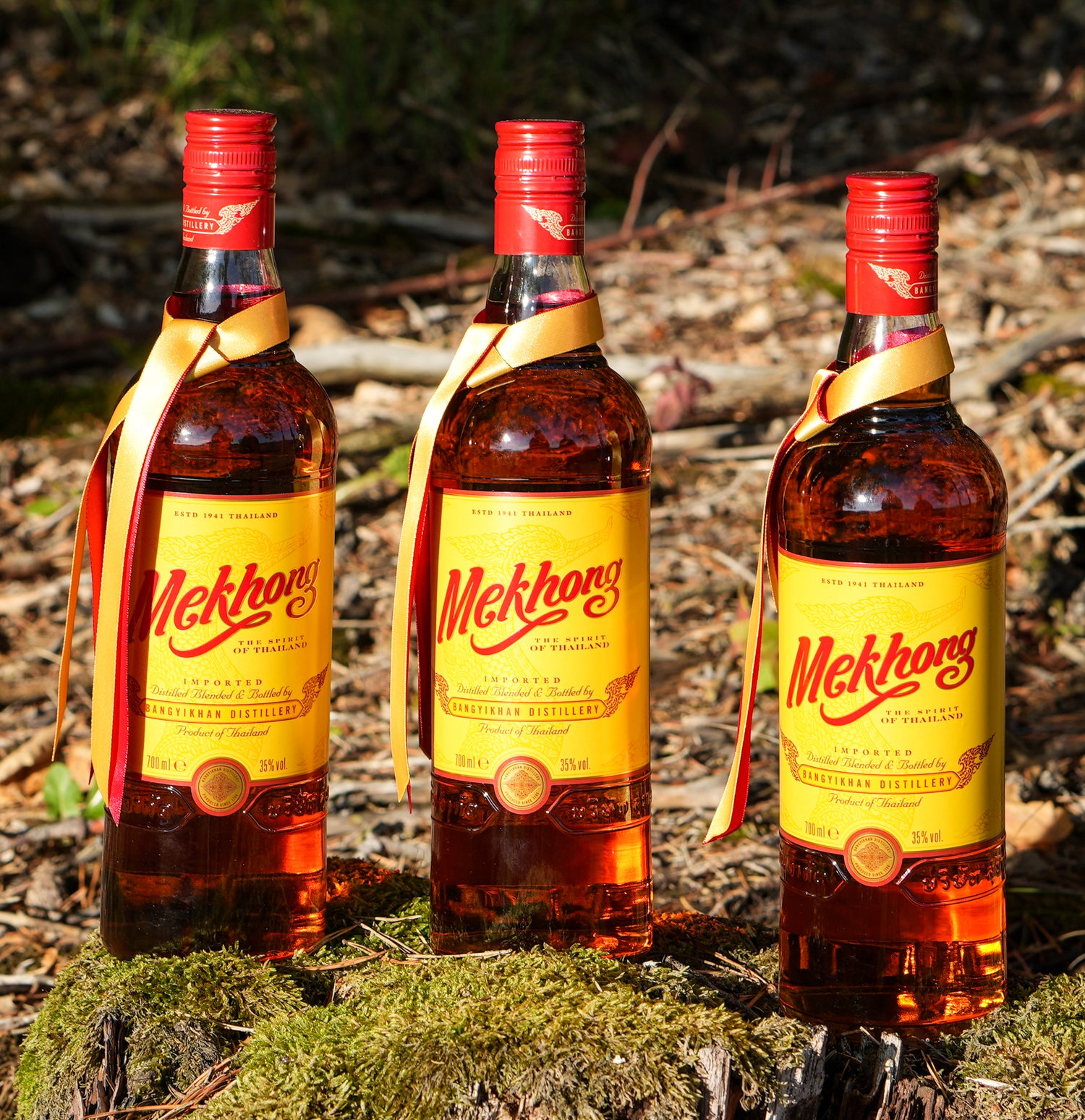 Traditionell aus Zuckerrohrmelasse und Reis destilliert, bevor er mit einem geheimen Rezept aus natürlichen thailändischen Kräutern und Gewürzen verfeinert wird, ist der Mekhong Thailands Nationalspirituose. Der Whiskey ist eine wunderbare Basis für Cocktails und stellt eine interessante Alternative zu Rum, mit dem er nahe verwandt ist, dar. Mehkong erschien 1941 und konnte schnell die Begeisterung der Bevölkerung gewinnen. Gewonnen wird der Schnaps aus 95% Rohrzuckermelasse und 5% Reis.